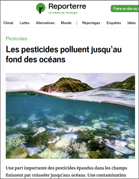 Les rivières, nappes phréatiques et océans sont contaminés par des rejets industriels, des pesticides agricoles, des médicaments, des métaux lourds comme le cadmium ou le plomb, ou encore par des microplastiques. Ces substances perturbent les écosystèmes aquatiques, mais finissent aussi dans notre assiette à travers les poissons et fruits de mer. Certaines molécules sont cancérigènes, mutagènes ou perturbatrices endocriniennes.